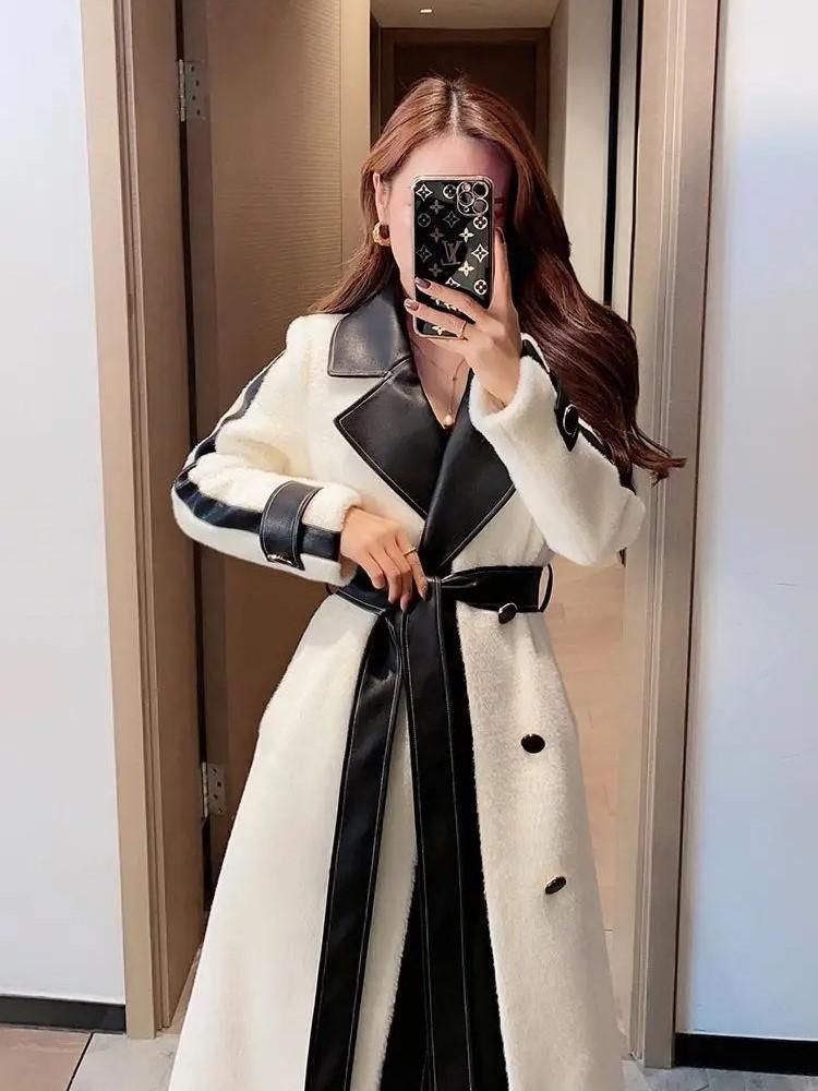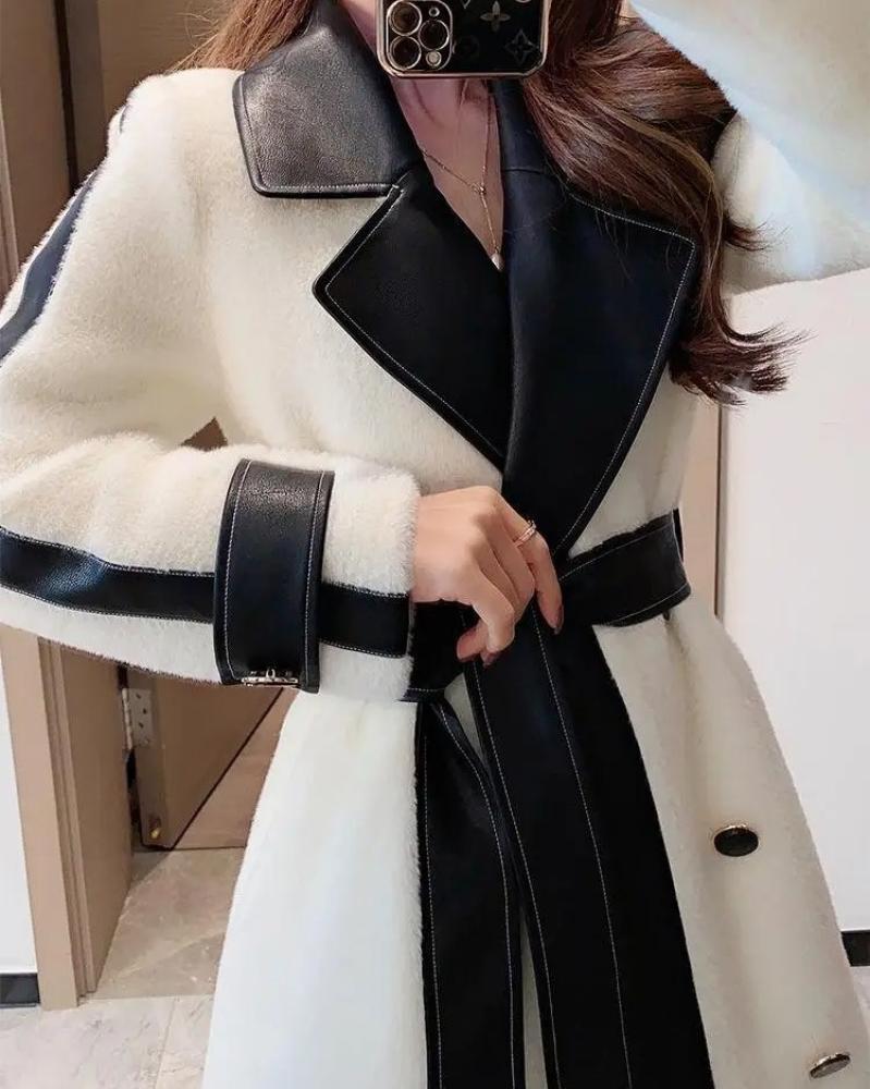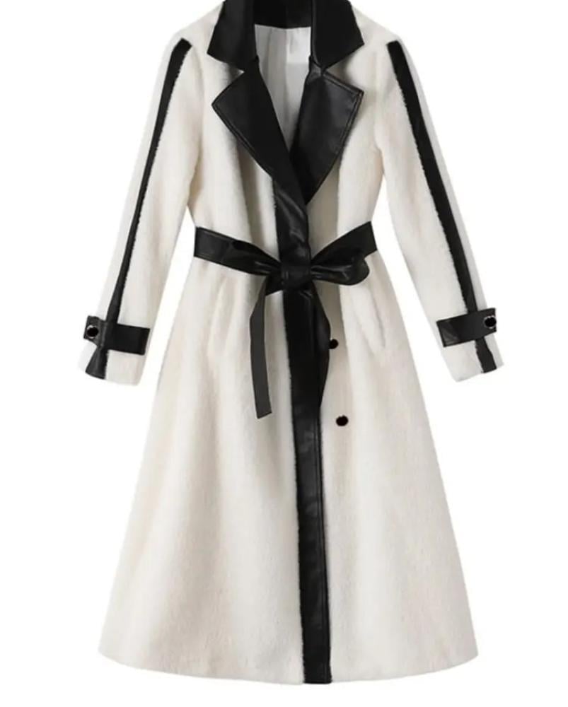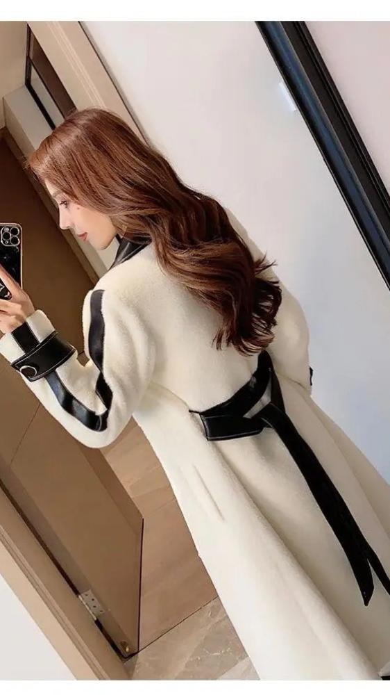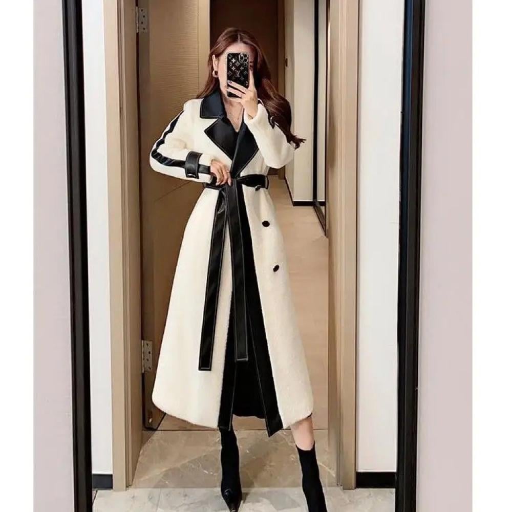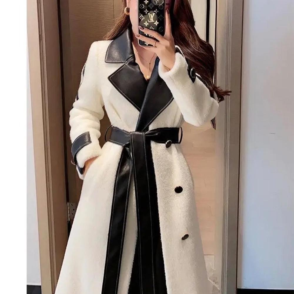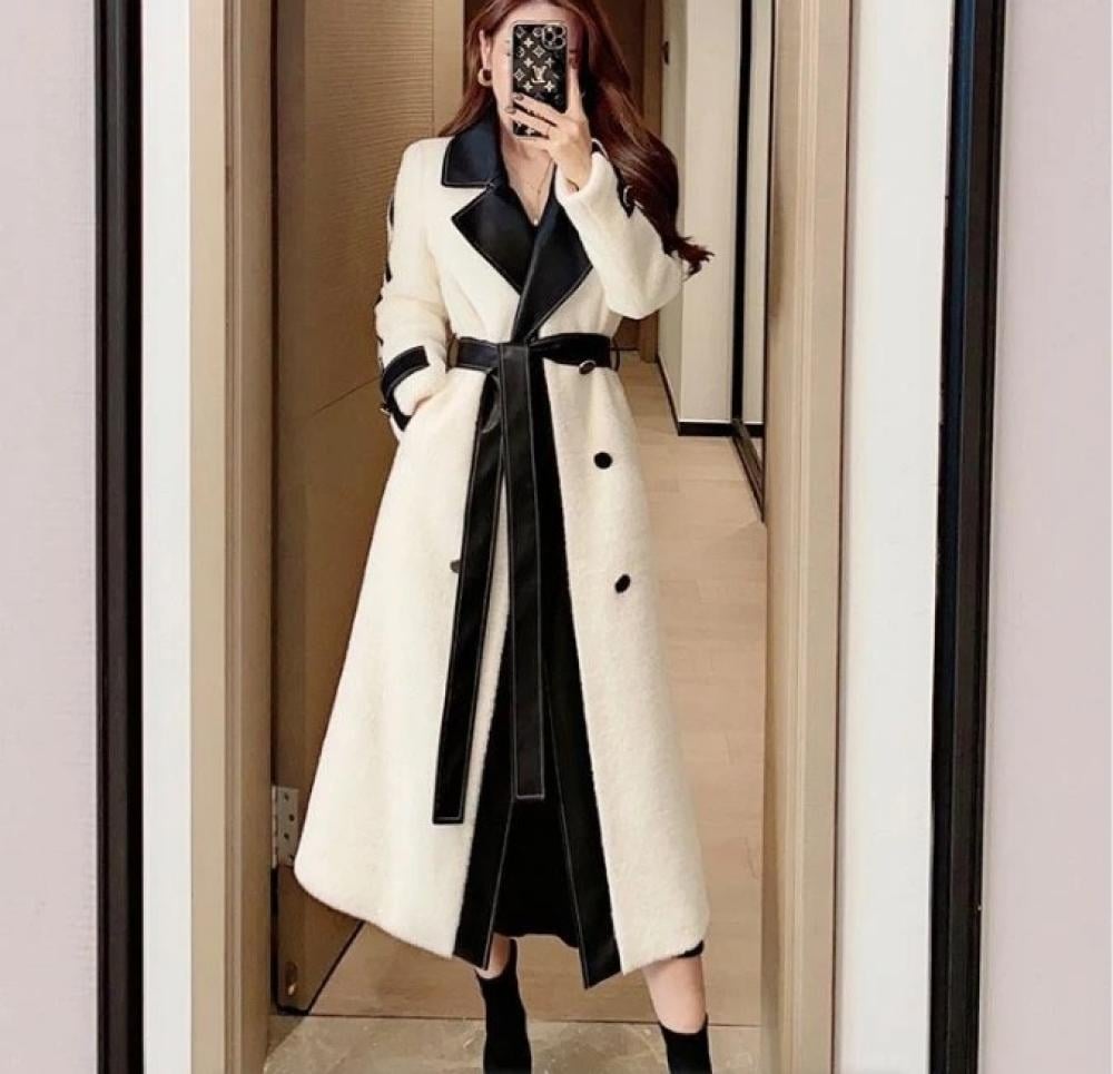 معطف نسائي طويل وفخم من فيري نايس، يتميز بتصميم فاخر يجمع بين الأناقة والحداثة. يحتوي على ياقة وأطراف مزيّنة بتفاصيل جلدية تضيف لمسة عصرية وجذابة، مع حزام يحدد الخصر ليبرز جمال القوام. المعطف مصنوع من خامات عالية الجودة توفر الدفء والراحة في الأيام الباردة، ما يجعله خيارًا مثاليًا للمناسبات الرسمية والإطلالات اليومية.