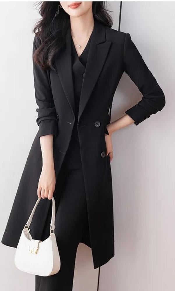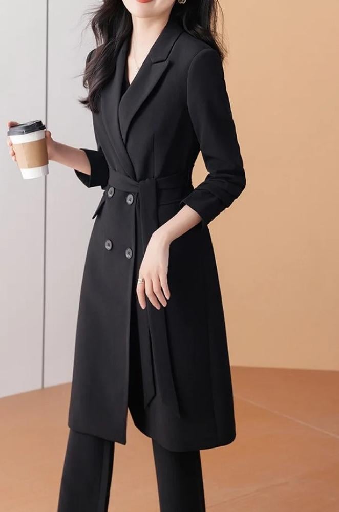 الأسود هو ملك الألوان، حيث يضيف رونقًا خاصًا، مما يجعله مثاليًا للمناسبات الرسمية والاجتماعات، حيث يجمع بين الراحة والأناقة. تتناسب البدلة مع مختلف المناسبات، سواء كنت في المكتب أو تحضرين حدثًا خاصًا.