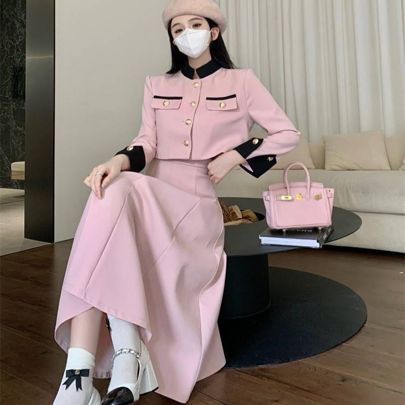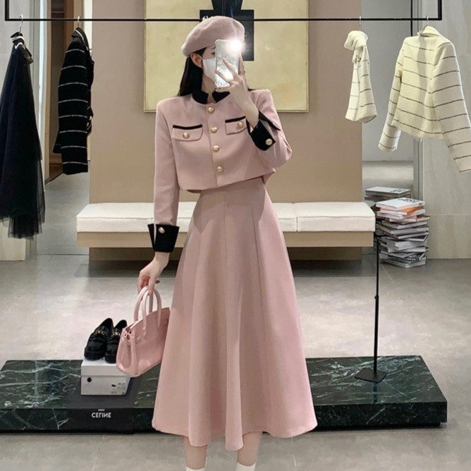 اختر الأناقة المستوحاة من كوريا طقم إطلالة راقية يتألف من جاكيت قصير وتنورة متوسطة الطول مصمم بأناقة تلائم جميع المناسبات
